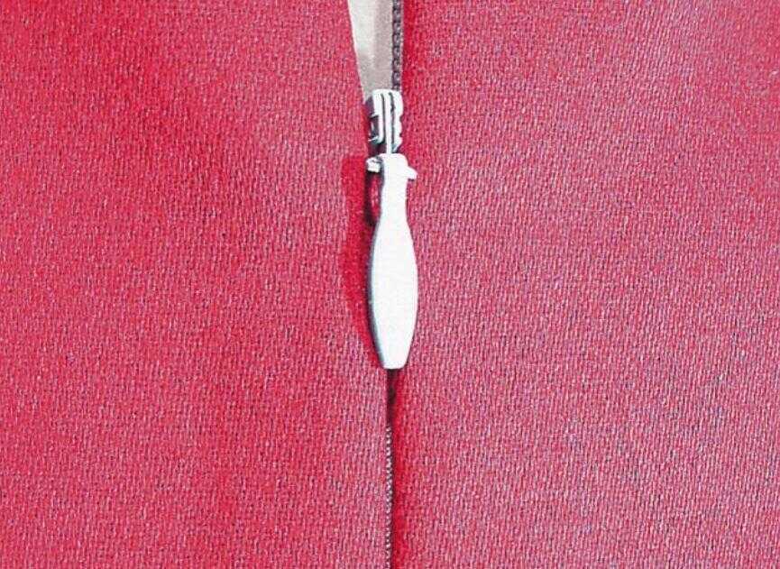 Stavite drugu polovinu rajfešlusa na drugu stranu. Zupce zatvarača postavite ispod desnog utora donjeg dijela stopala i zašijte kako je gore opisano.
